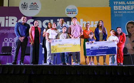 A través de la Dirección de Desarrollo Humano y Educación, otorgamos apoyo a 5 mil 920 estudiantes con Mi Beca Chihuahua de Excelencia, a fin de reconocer a quienes se distinguen por su alto desempeño escolar; entregamos 11 mil 427 de Mi Beca Chihuahua de Formación a estudiantes de preescolar, primaria, secundaria y superior; y este año, creamos Mi Beca de Competitividad, con la cual apoyamos a 111 jóvenes que se distinguen por su alto desempeño en las carreras de Ingeniería Industrial, Mecatrónica, Calidad, Electrónica, Aeronáutico y Sistemas, así como la carrera técnica superior universitario de Mecatrónica.