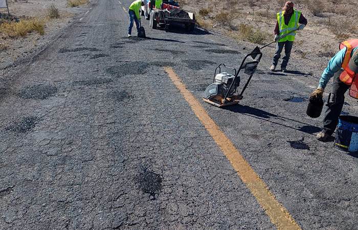 Coyame de Sotol.- La Presidencia Municipal de Coyame del Sotol informó que dio inicio a los trabajos de bacheo de la carretera a Ojinaga, luego de que la Secretaría de Infraestructura, Comunicación y Transportes dio la autorización de que sean realizados los trabajos
