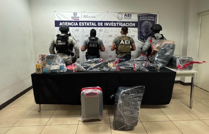 Cd. Juárez.- Elementos de la Agencia Estatal de Investigación, adscritos al Centro de Operaciones Estratégicas (COE), de la Fiscalía de Distrito Zona Norte, realizaron el aseguramiento de droga, cartuchos, armas de fuego y una granada de fragmentación, durante un recorrido de investigación y persecución del delito en Ciudad Juárez.