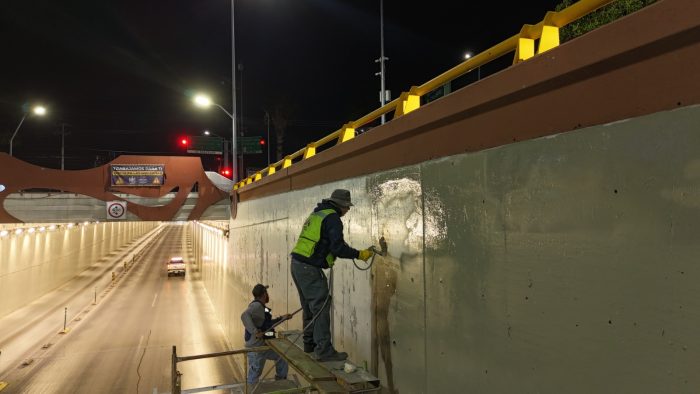 Chihuahua.- El Gobierno Municipal, encabezado por el alcalde Marco Bonilla, finalizó con los trabajos de pintura en los muros del túnel ubicado en la avenida La Cantera y Ramírez Calderón, como parte de las acciones permanentes para el mejoramiento de la imagen urbana.