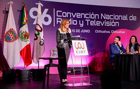 Chihuahua.- “Bienvenidos a Chihuahua, al estado imparable, el estado que va pa’ arriba”, afirmó la Gobernadora Maru Campos, durante la ceremonia de inauguración de la 96ª Convención Nacional, de la Cámara de la Industria de la Radio y la Televisión (CIRT).