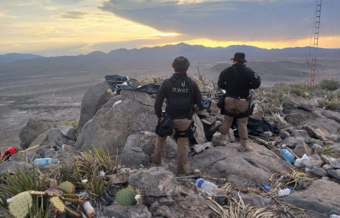 Gracias al sobrevuelo de un dron, se detectó un campamento en una zona elevada, donde una patrulla pedestre se desplegó para verificar el sitio y se encontró una instalación improvisada equipada con alimentos, agua, cobijas y utensilios.