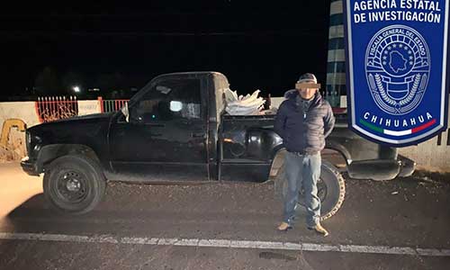 Cuauhtémoc.- Elementos de la Agencia Estatal de Investigación adscritos a la Fiscalía de Distrito Zona Occidente, detuvieron al conductor de una pick up que trasportaba maíz robado de una bodega ubicada en el kilómetro 114 de la carretera Cuauhtémoc – La Junta.