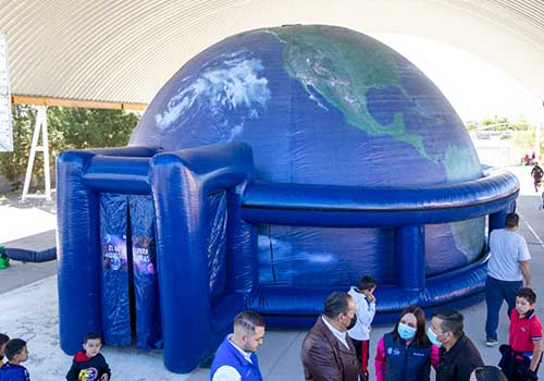 Chihuahua.- Como parte de las acciones para contribuir a la educación de las y los niños, el Gobierno Municipal, a través de la Dirección de Desarrollo Humano y Educación, llevó el “Planetario Móvil” a 17 escuelas públicas en la ciudad, de nivel preescolar y primaria.