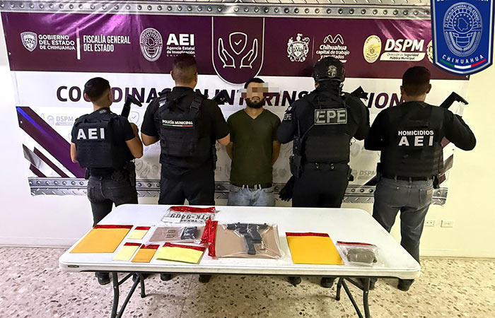 Chihuahua.- En seguimiento a las indagatorias que se relacionan con casos recientes de homicidio, la Fiscalía de Distrito Zona Centro, cumplimentó una orden de cateo en la colonia Saucito, donde se efectuó la detención de una persona identificada como Martín Antonio N. P., de 33 años de edad.