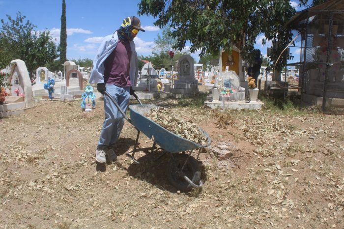 Chihuahua.- Con el propósito de recibir a los visitantes en condiciones dignas y espacios limpios, el Gobierno Municipal, a través de la Dirección de Servicios Públicos Municipales, trabaja en la limpieza de los cuatro panteones municipales, previo a la celebración por el Día de las Madres.