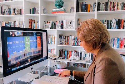Chihuahua.- La gobernadora Maru Campos Galván participó vía ZOOM en la 8ª Conferencia Anual Construyendo una Frontera Competitiva México-Estados Unidos (Eighth Annual Building a Competitive U.S.-Mexico Border Conference), que se desarrolló en Washington, D. C. y fue organizada por el Centro Internacional para Académicos Woodrow Wilson.