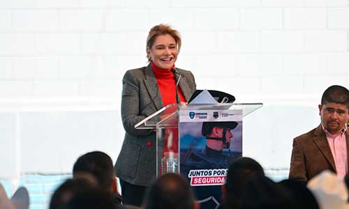 Durante la ceremonia que se desarrolló en las instalaciones del C-4, entregó además equipo táctico en beneficio de más de 500 policías de varios municipios, en una inversión que a nivel estatal suma más de 350 millones de pesos.