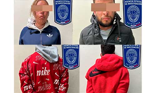 En ese lugar fue capturado uno de los menores de iniciales M.A.G.G., de 17 años. Posteriormente, se detuvo a otro menor, este de 16 años, de iniciales F.H.A., así como a Francisco Manuel T. S., de 32 años y Érika Janet T. A., de 36 años, estos tres quienes viajaban en un vehículo de la marca Subaru.