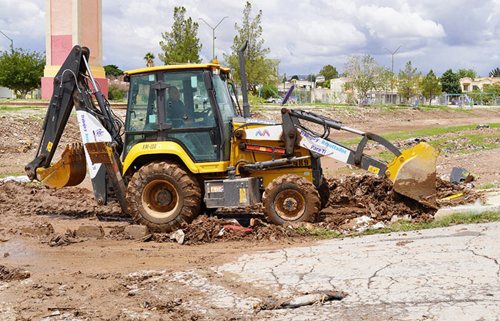 Chihuahua.- Las direcciones de Obras Públicas y Mantenimiento Urbano, continúan apoyando en la limpieza de residuos generados por las lluvias de esta semana, donde se reportó el retiro de 182 metros cúbicos de material de arrastre en las colonias: