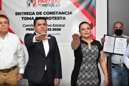 A través de la Comisión Estatal de Procesos internos que preside Normando Perales, se hizo entrega del documento que hace constar que, a partir de hoy, existe dirigencia Estatal de manera Estatutaria, misma que les fue tomada la Protesta reglamentaria por Parte del delegado General del Comité Ejecutivo Nacional José Benítez Rodríguez.